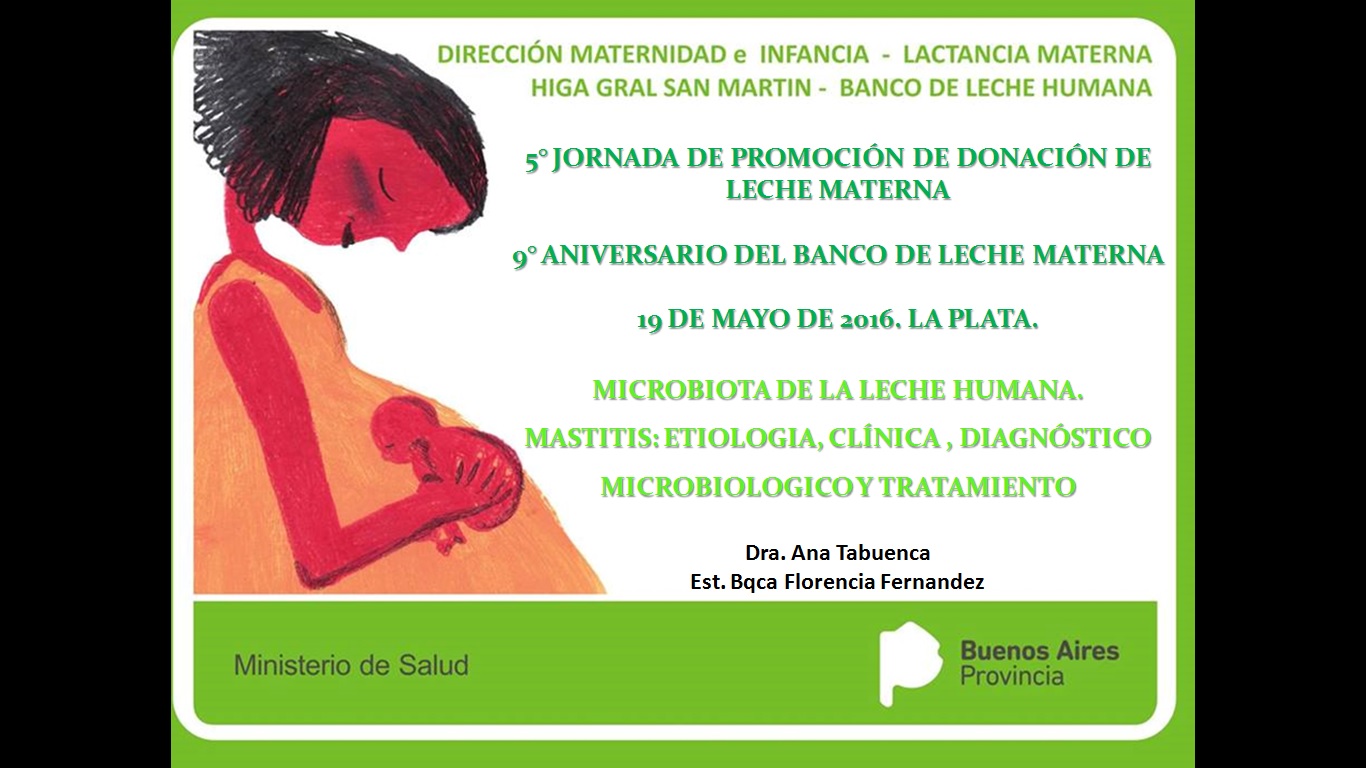 • Microbiota de la Leche Humana. Como tomar una muestra bacteriológica de la leche materna. Mastitis. Etología más frecuentes. Clínica y Tratamiento, por la Dra. Ana Tabuenca y Florencia Fernandez, estudiante del último año de Bioquímica de la Universidad Nacional de La Plata - UNLP