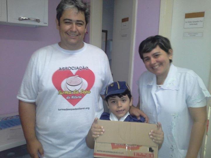 Rogério Barbosa, seu filho Luiz Felipe e a nutricionista do BLH-Huap, Fernanda Lopes (Foto: Turma da Sopa de Niterói e o 4º GEMAR Gaviões do Mar)